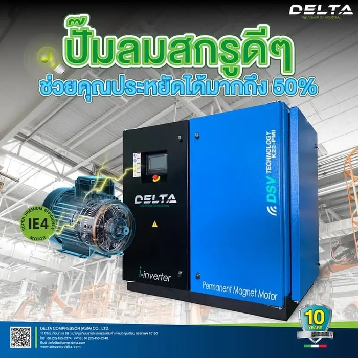 มอเตอร์ปั๊มลม Delta จำหน่ายปั๊มลมแบบสกรู ข้อดีต่างจากมอเตอร์ทั่วไปอย่างไร?